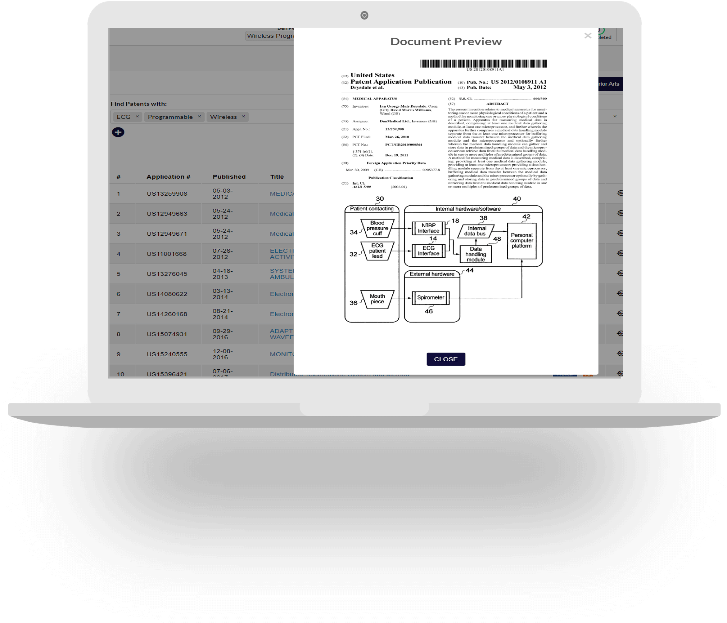 Quickly preview similar inventions found in Patent search report and download full copies of similar inventions found.